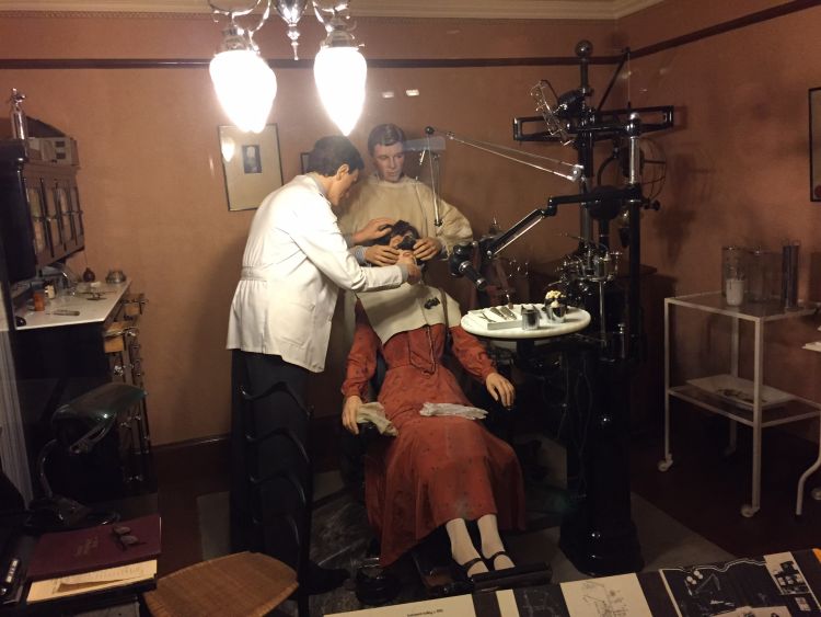 Különálló kis szobákban korhű berendezéssel mutatják be például hogyan zajlott az első altatásban végzett műtét, milyen volt egy 19. századi fogorvosi rendelő vagy hogyan festett egy 1800-as évekbeli patika.