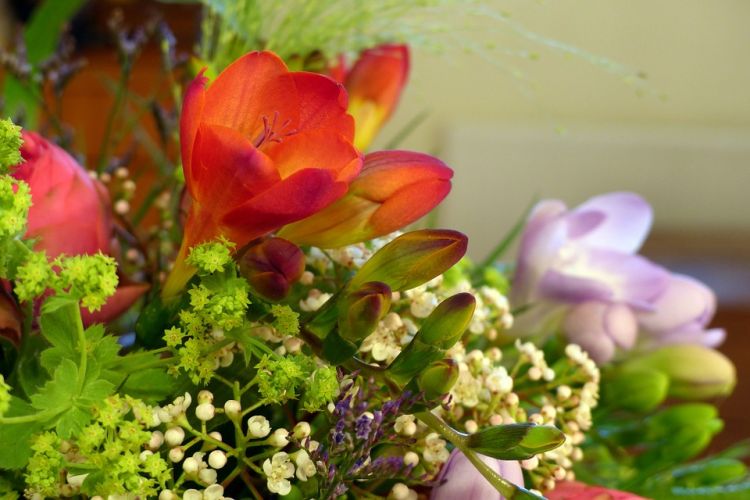 Az egyik legnépszerűbb virág a frézia, nem csak a tartóssága, színe, hanem az illata miatt is. Gyakran vásárolják, mert egész évben lehet kapni, általában vegyes színösszeállításban árusítják.