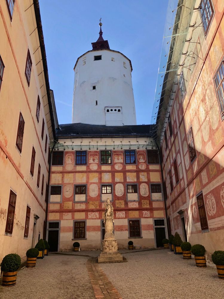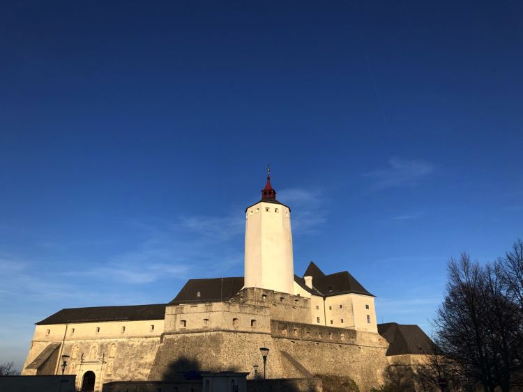 Kicsit időszűkében voltunk, így ebéd után Fraknó vára (Burg Forchtenstein) felé vettük az utunkat, ahol még a korlátozott téli nyitvatartás, de azért magyar tárlatvezetés várt bennünket.