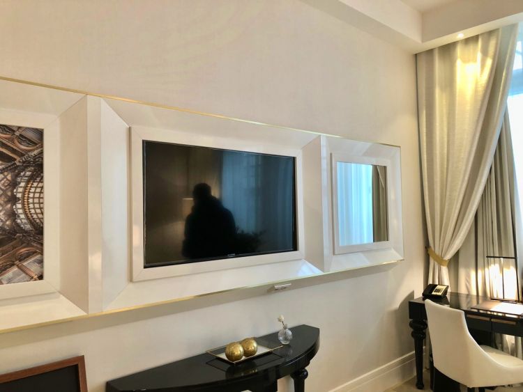 A televízió diszkrét megjelenítése figyelemreméltó, hiszen egy kép és egy tükör közé lett elrejtve.