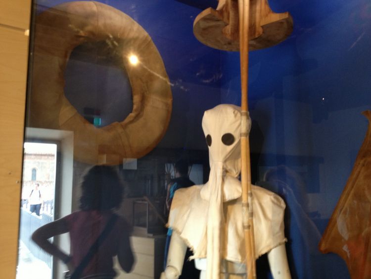 Hiszen az egyik vitrinben olyan gyakorlatias találmányokra is figyelmesek lehetünk, mint az úszógumi, békatalp és a víz alatti létezésre kifejlesztett búvárruha vagy szkafander.