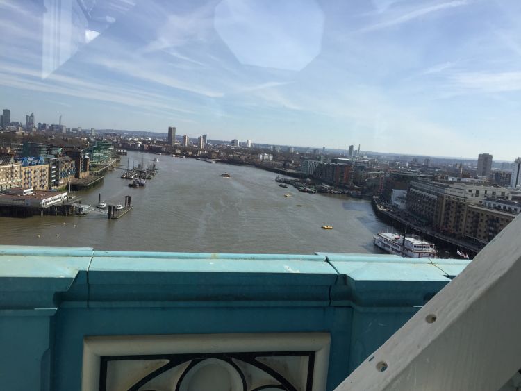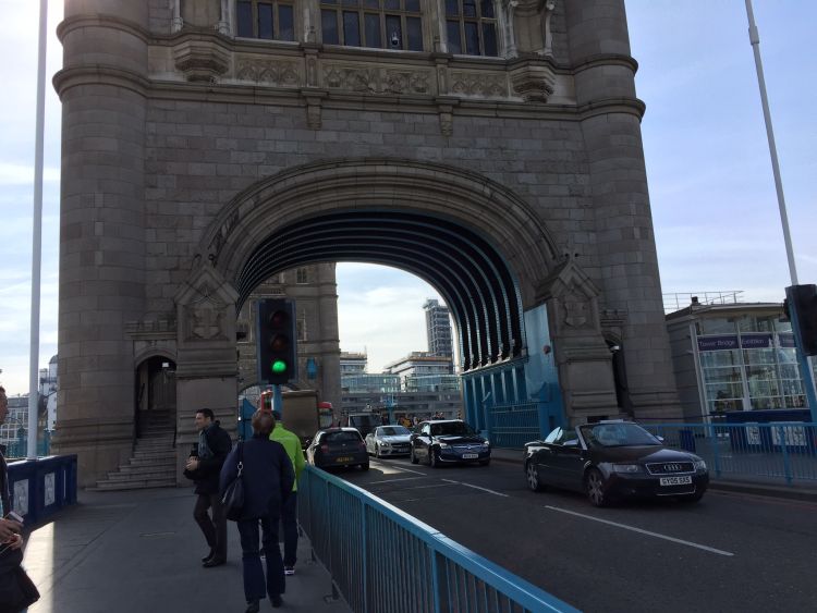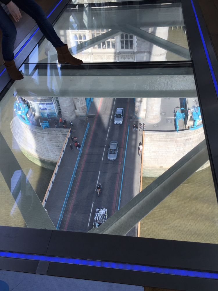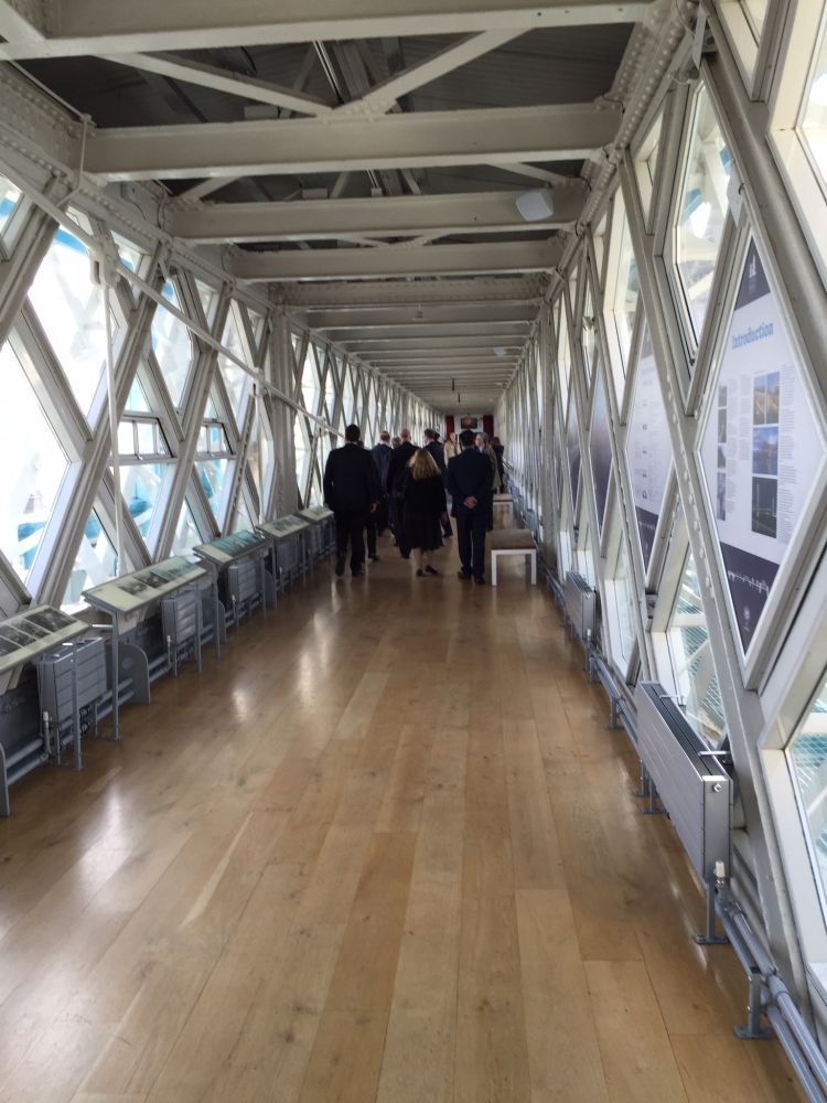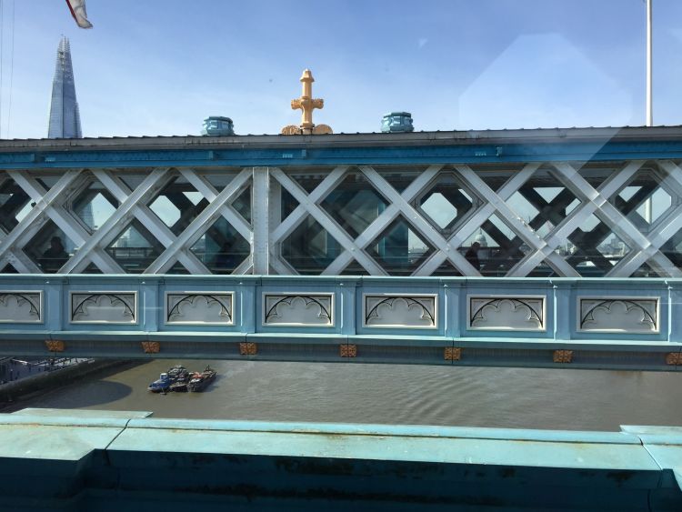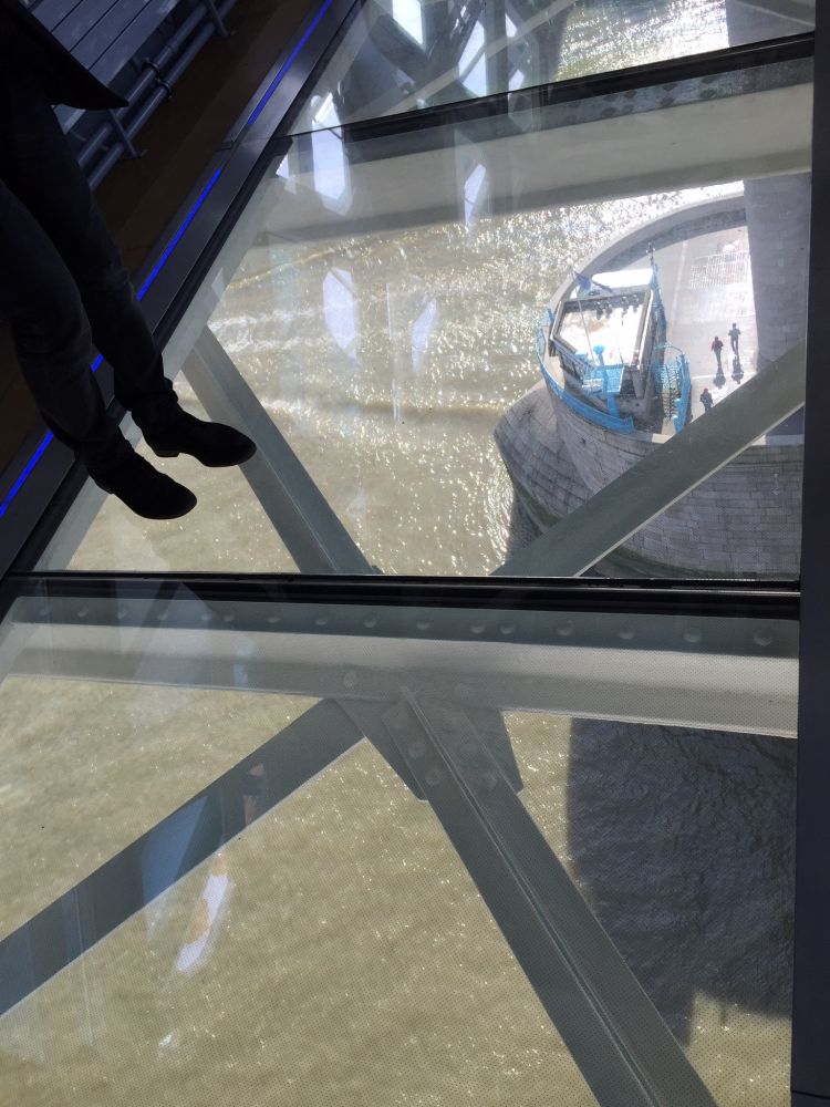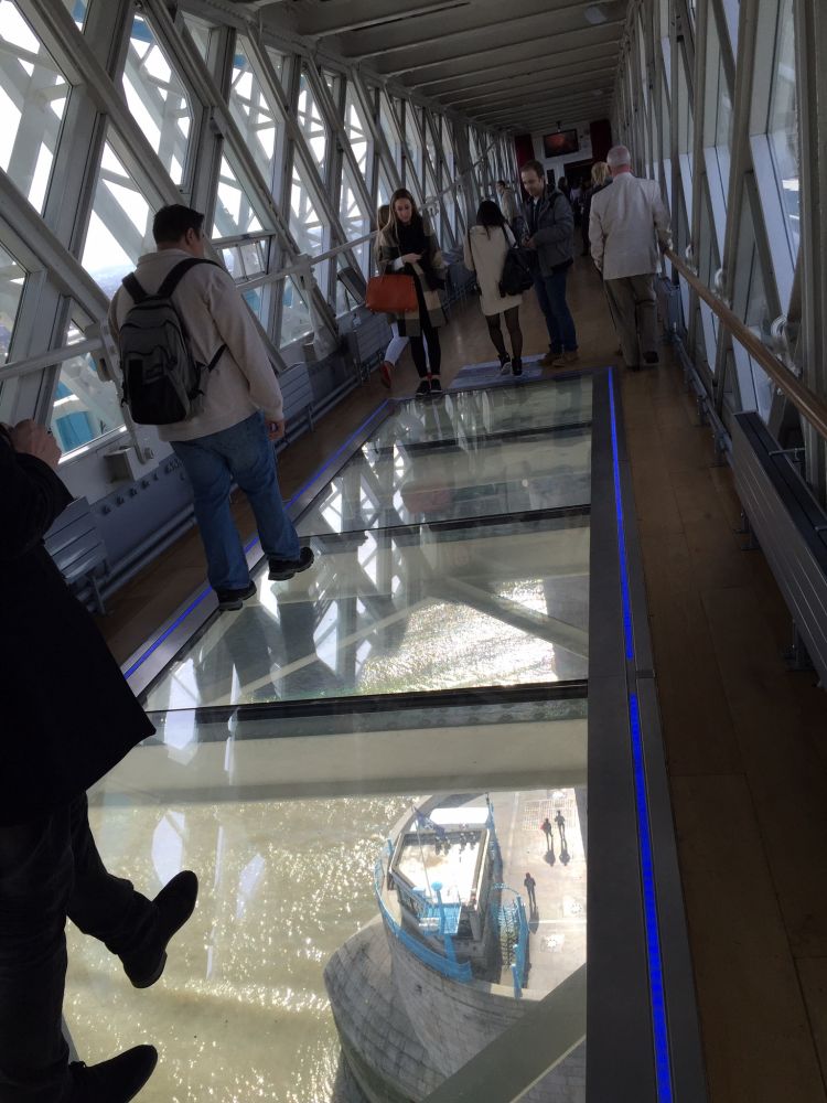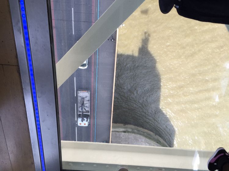 A bátraknak kialakított gyalogosfolyosó padlója több helyen is „üvegből” van, így a Temze felett lebegve, az autós forgalmon túlnőve, fedett, szélmentes nyugalomban juthatunk át a túlpartra. Nagyon nagy élmény, érdemes kipróbálni.