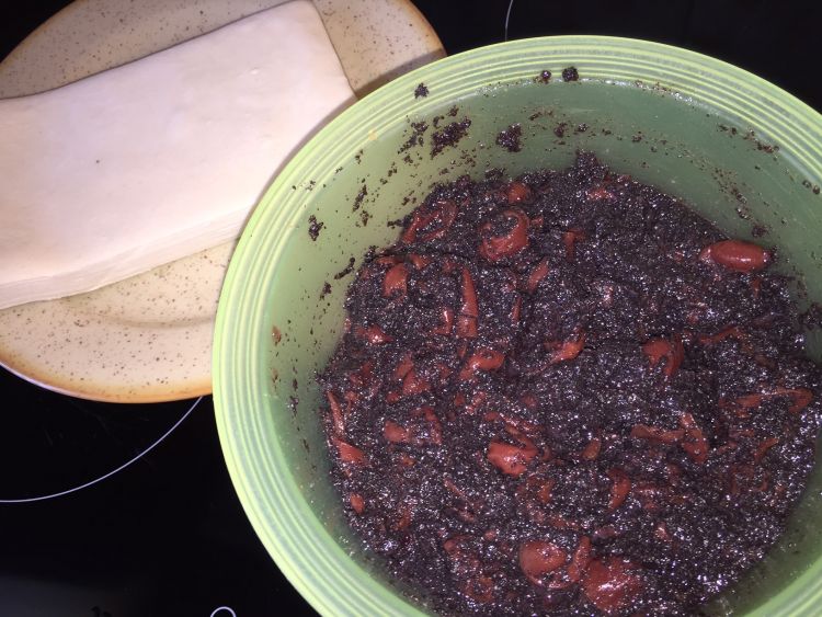A mákot és a meggydzsemet összedolgozzuk. Plusz cukor nem szükséges, mert a meggydzsem már ízesítve van.