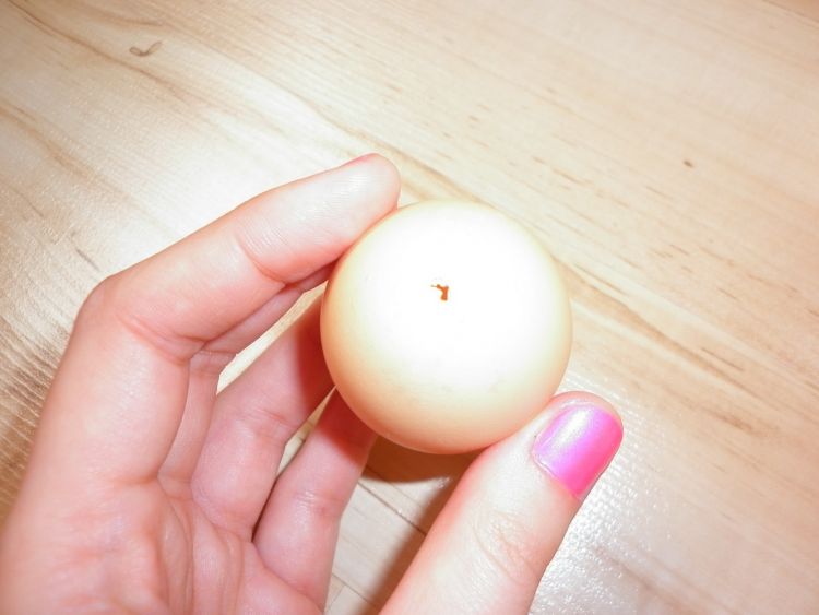 1. lépés: A lefertőtlenített tojást nagyon óvatosan egy vastagabb hústűvel kiszúrjuk (kopogtatva). Miután kifújtuk – kell hozzá a jó tüdő – meleg vízzel átmossuk és hagyjuk kiszáradni.