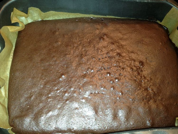 A lisztet, kakaót, cukrot keverjük össze, majd adjuk hozzá a tejet, olajat és a tojásokat. Készítsünk egységes masszát és tegyük a sütőpapírral kibélelt tepsinkbe. Majd 180 fokon süssük készre 10 perc alatt.