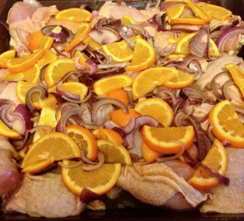 Narancsvidék a konyhában! Sült csirkecomb extrákkal
